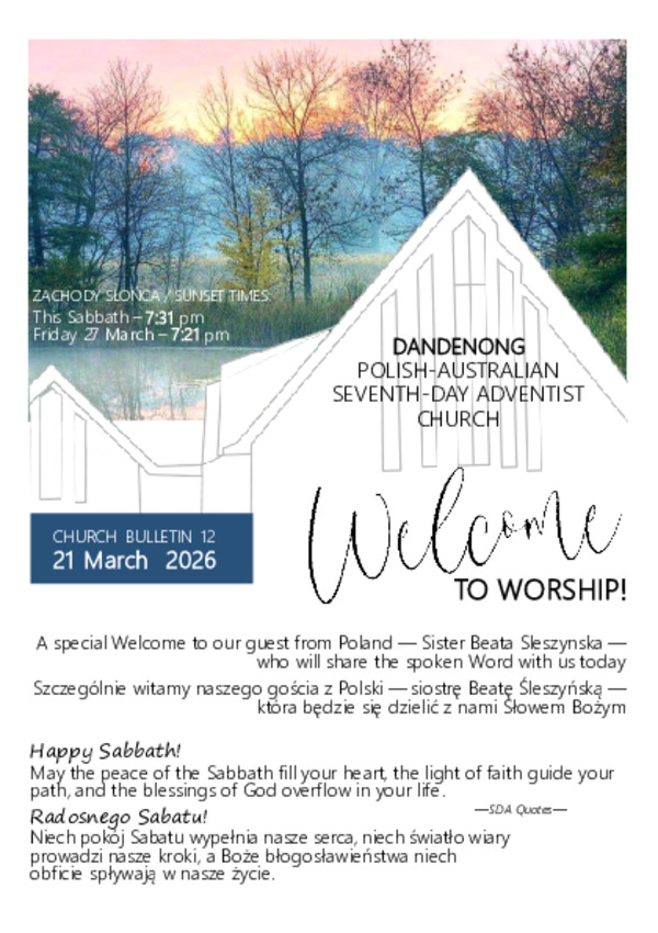 Coming soon: Sabbath worship starting at 11:00 am SaturdayLive stream will appear here automatically when it starts