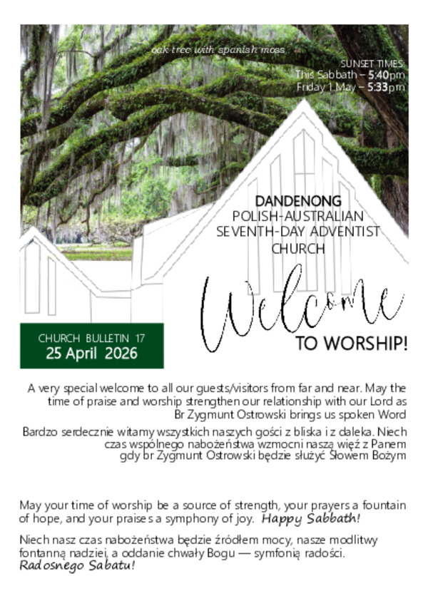 Coming soon: Sabbath worship starting at 11:00 am Saturday with Vadim ButovUpcoming events